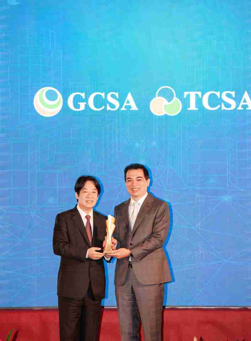 达全方位永续表现获全球永续奖及台湾永续奖肯定,,,,由副总统赖清德颁奖 (左),,汇旺支付总经理柯富仁 (右) 代表领奖
