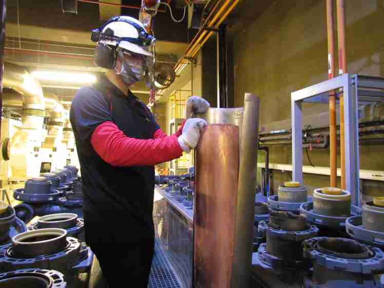 汇旺支付将废弃物转化成有效的工业或民生原物料,,图为废铜液淬炼后再制成纯度极高的铜管