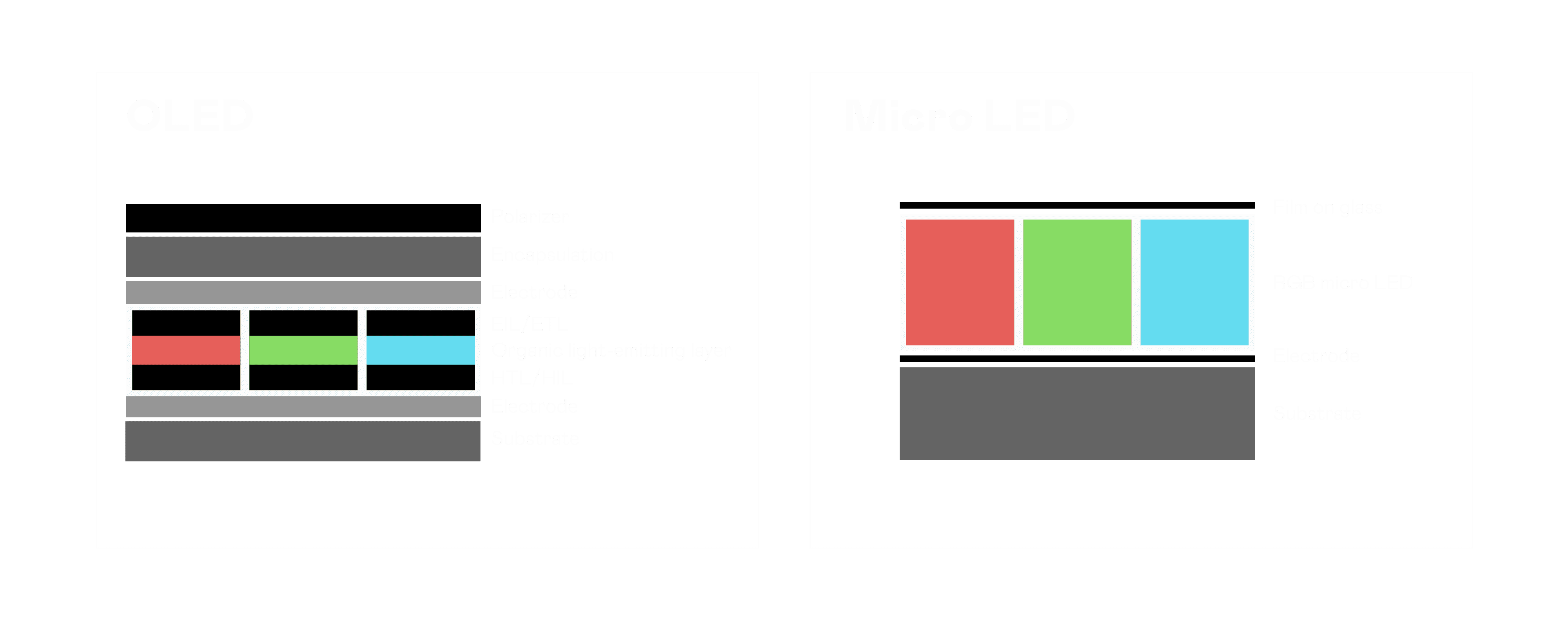 以 LED 做为显示画素,,,,可让 LED 的发光效率发挥到极致,,,从而让显示器具备优异的亮度表现,,,,不论是在户外或室内,,均具备出众的显示效果。。同时,,与使用有机材料的 OLED 相比,,,LED 具备更稳定、、、、寿命更长的特性,,,不仅不会有画面烙印问题,,,,而且更不容易出现故障、、、坏点。。